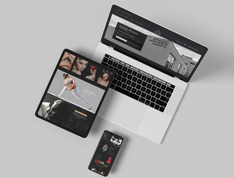 Il progetto web per Nook Studio è stato sviluppato con una piattaforma dinamica e performante, perfettamente ottimizzata per tutti i dispositivi e dotata di un sistema di gestione contenuti semplice e scalabile.